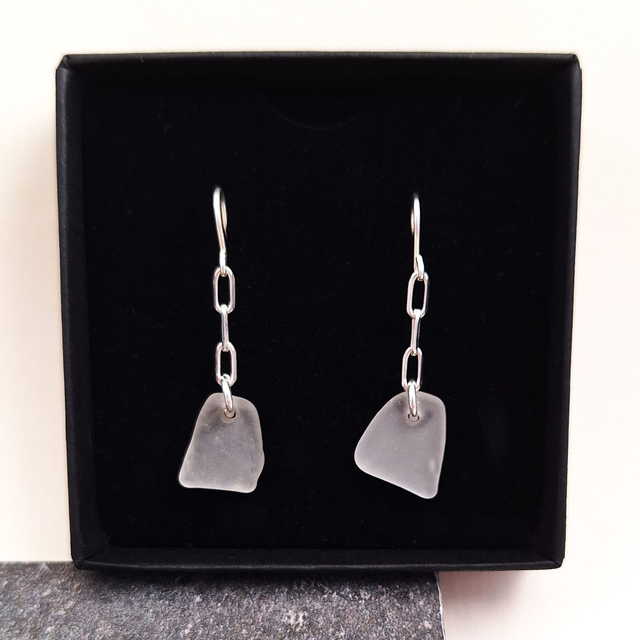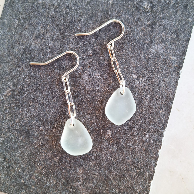 Chaque pièce de verre a été polie par la mer et trouvée sur les plages de la Côte d’Azur. Les deux boucles se ressemblent mais ne sont pas identiques de chaque côté, c'est ça la beauté unique !