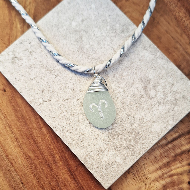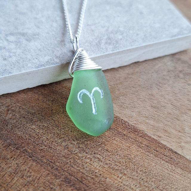 Pendentif astrologique du Bélier, créé à partir de véritables verres marins récoltés sur les plages de la Côte d’Azur. Naturellement polis par les vagues, ces bijoux possèdent chacun leur forme, leur couleur et leur histoire.