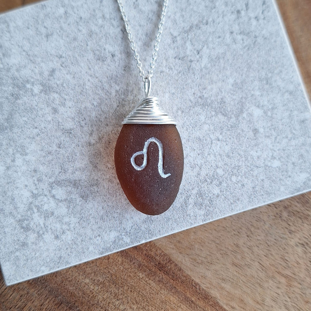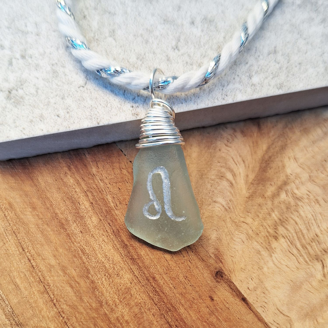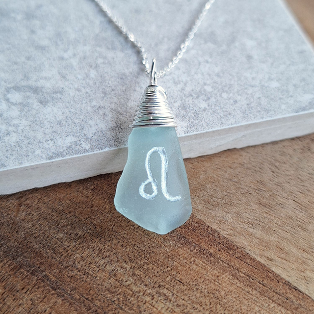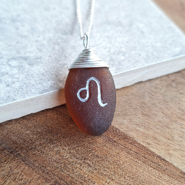 Pendentif astrologique du Lion, créé à partir de véritables verres marins récoltés sur les plages de la Côte d’Azur. Naturellement polis par les vagues, ces bijoux possèdent chacun leur forme, leur couleur et leur histoire.